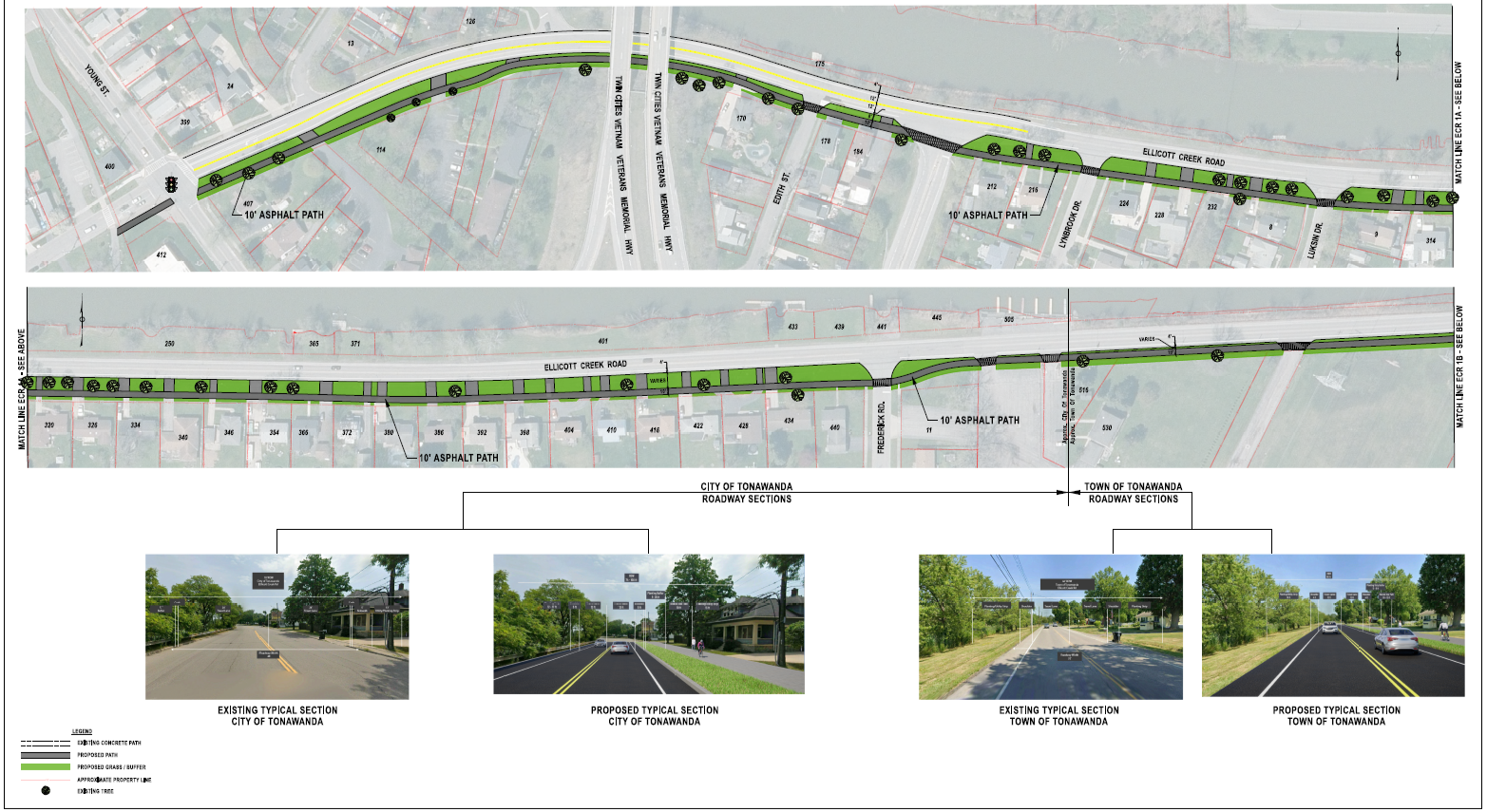 The Northtown Community Trails Project proposes a network of bikeways linking the Town of Tonawanda, the Town of Amherst, and the Village of Williamsville. A key feature of the project is a new bikeway along Parker Boulevard, offering a safer, lower-traffic alternative to the heavily traveled Niagara Falls Boulevard. This bikeway would link the existing Tonawanda Trail with Ellicott Creek by way of the newly completed Parker Boulevard Complete Street initiative.