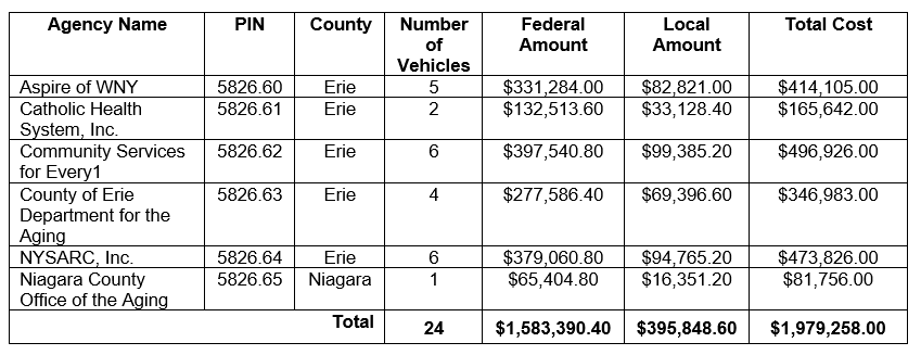 The Greater Buffalo-Niagara Regional Transportation Council (GBNRTC) is intending to amend its 2026-2030 Transportation Improvement Program (TIP) by adding 10 new projects funded with Federal Transit Administration allocations for Federal Fiscal Years 2024-25. Through a competitive application and evaluation process, the recommended projects include: