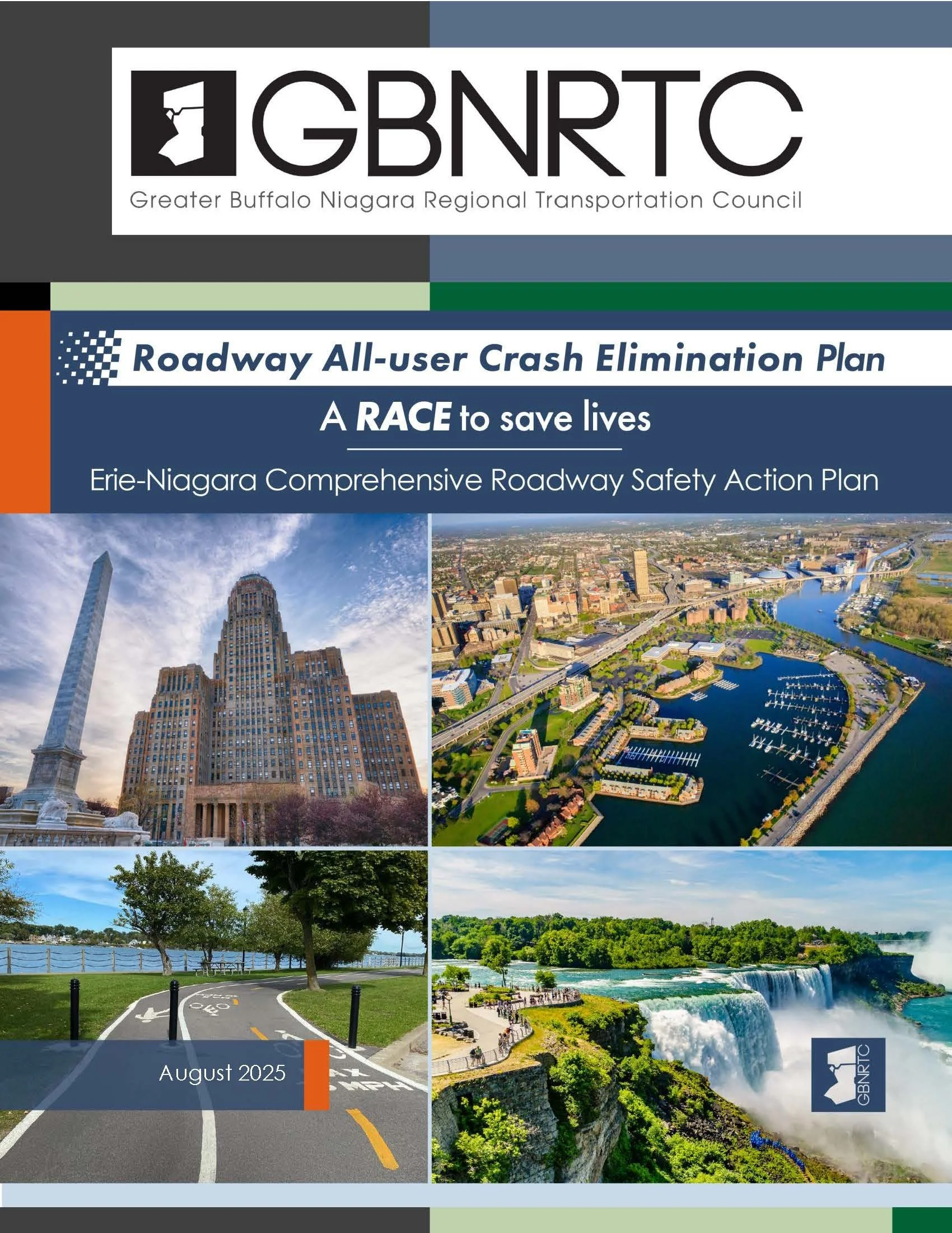 The GBNRTC has developed and adopted the Roadway All-User Crash Elimination Plan (RACE) to guide how the MPO region (Erie and Niagara Counties) will work to eliminate roadway fatalities and reduce serious injuries 50% for all road users including people who drive, walk, bike, or ride transit.