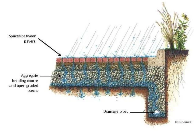 Pavement designed with high porosity that lets rainwater pass through and soak into the ground below, helping to manage stormwater naturally.