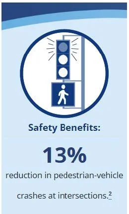Best suited for signalized intersections that include pedestrian facilities such as crosswalks, curb ramps, and sidewalks.