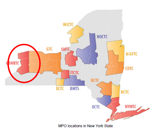 By federal law, an MPO is designated by each state's governor for every urban area in the United States of America with at least 50,000 residents. The GBNRTC is one of fourteen (14) designated Metropolitan Planning Organizations for New York and is composed of Erie and Niagara Counties in Western New York State.