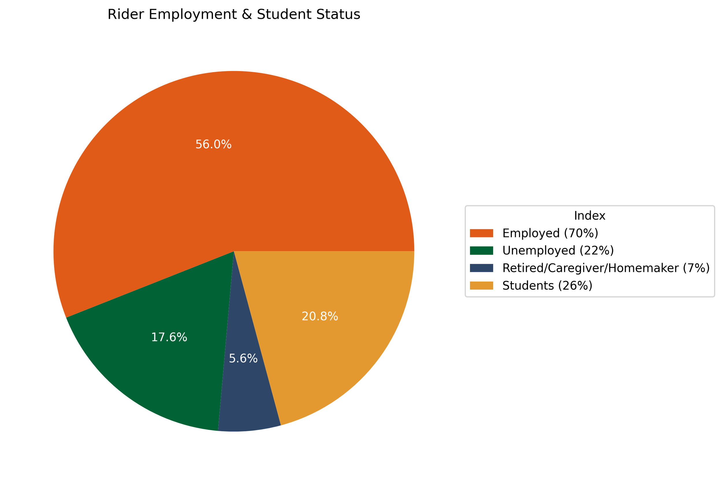 The data collected provides current information on travel patterns and demographics for transit riders as well as service characteristics. Some key statistics include: